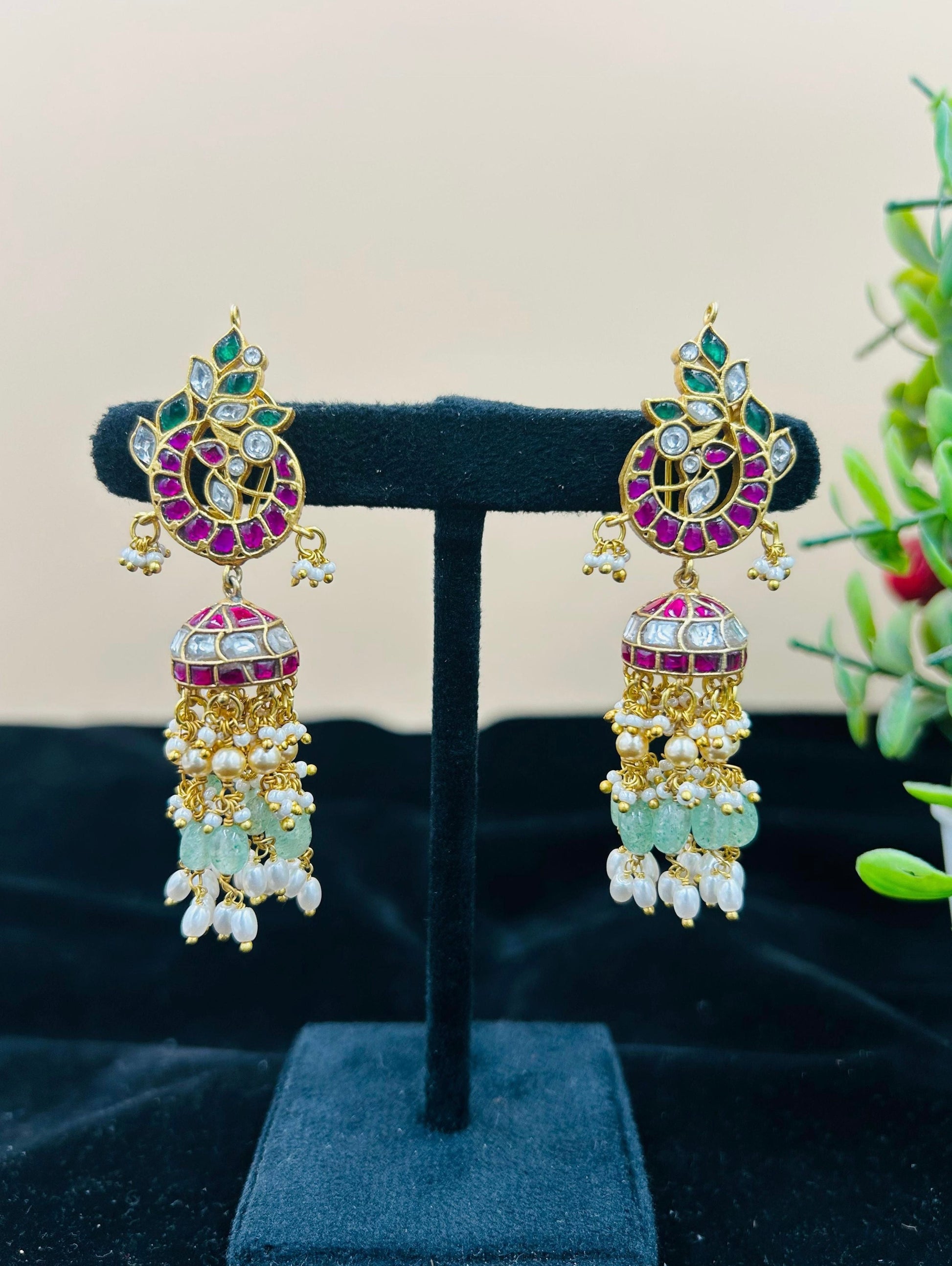 This beautiful pair of Chand Jhumka earrings is a classic piece of jewelry that adds a touch of elegance to any outfit. Made with high-quality materials and exquisite craftsmanship, these earrings are perfect for special occasions or everyday wear. The intricate design and traditional appeal make it a timeless addition to any jewelry collection. Invest in these Chand Jhumka earrings and elevate your style.