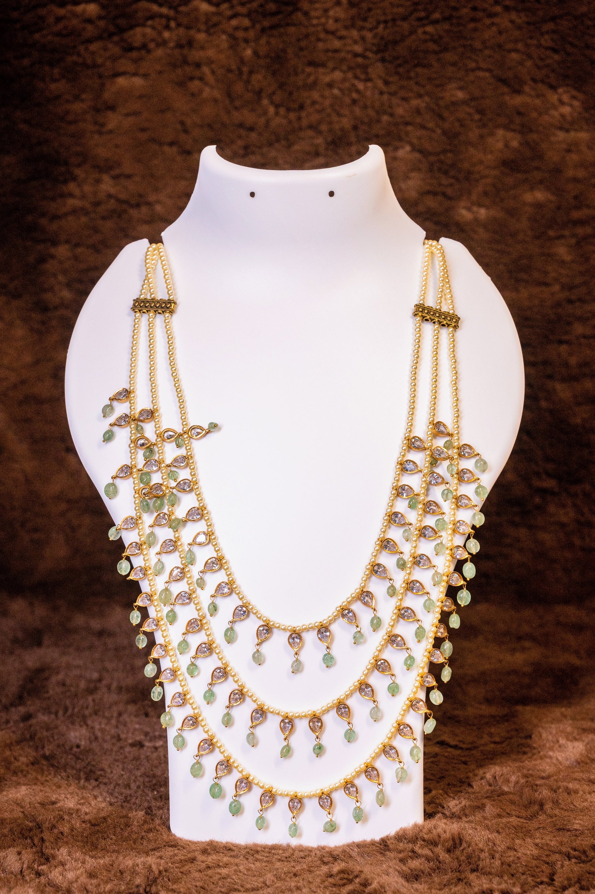 Three Layer Jadau Beads Necklace Mala