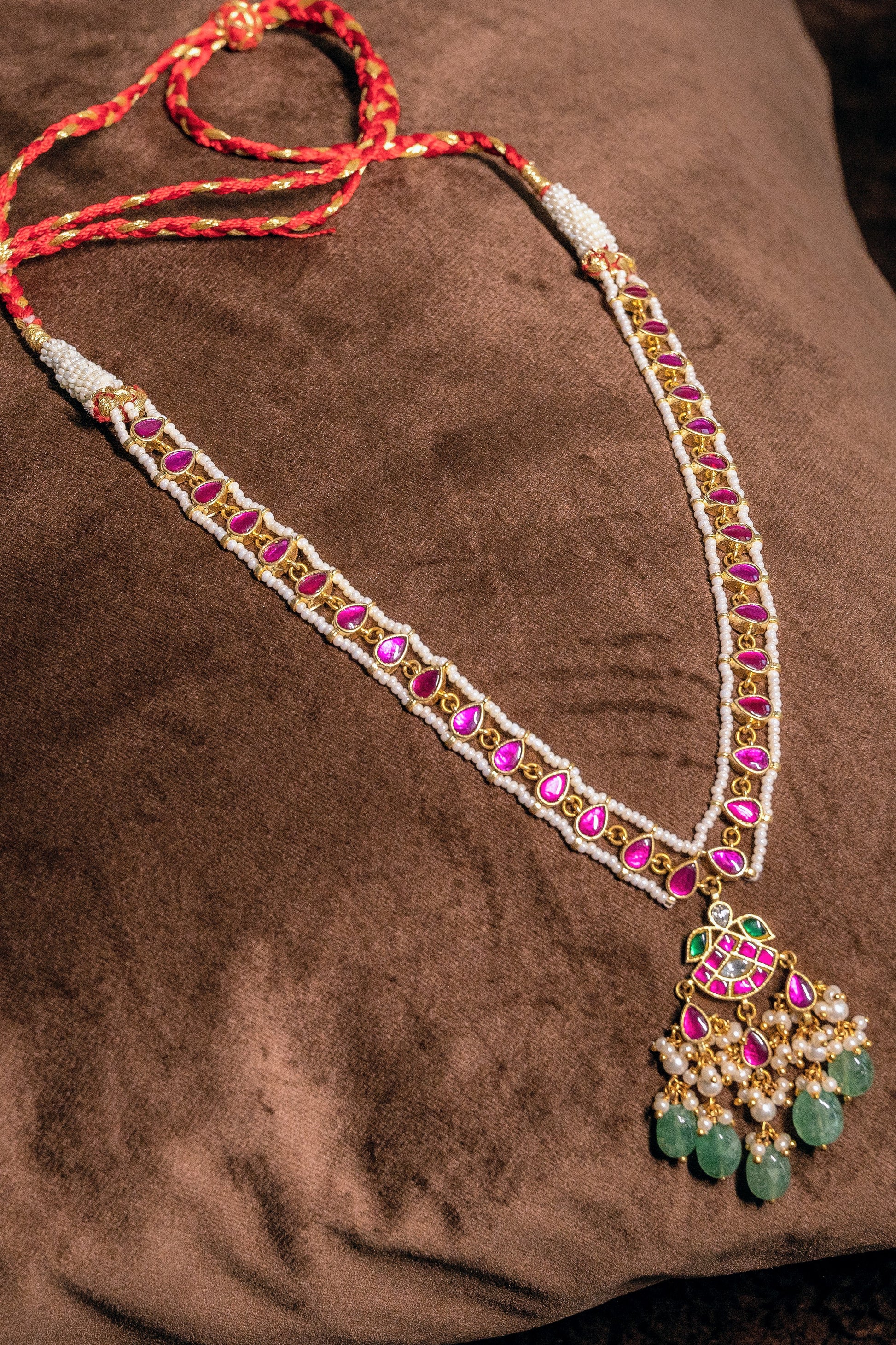 Pink Stone Jadau Kundan Necklace Set With Earnings