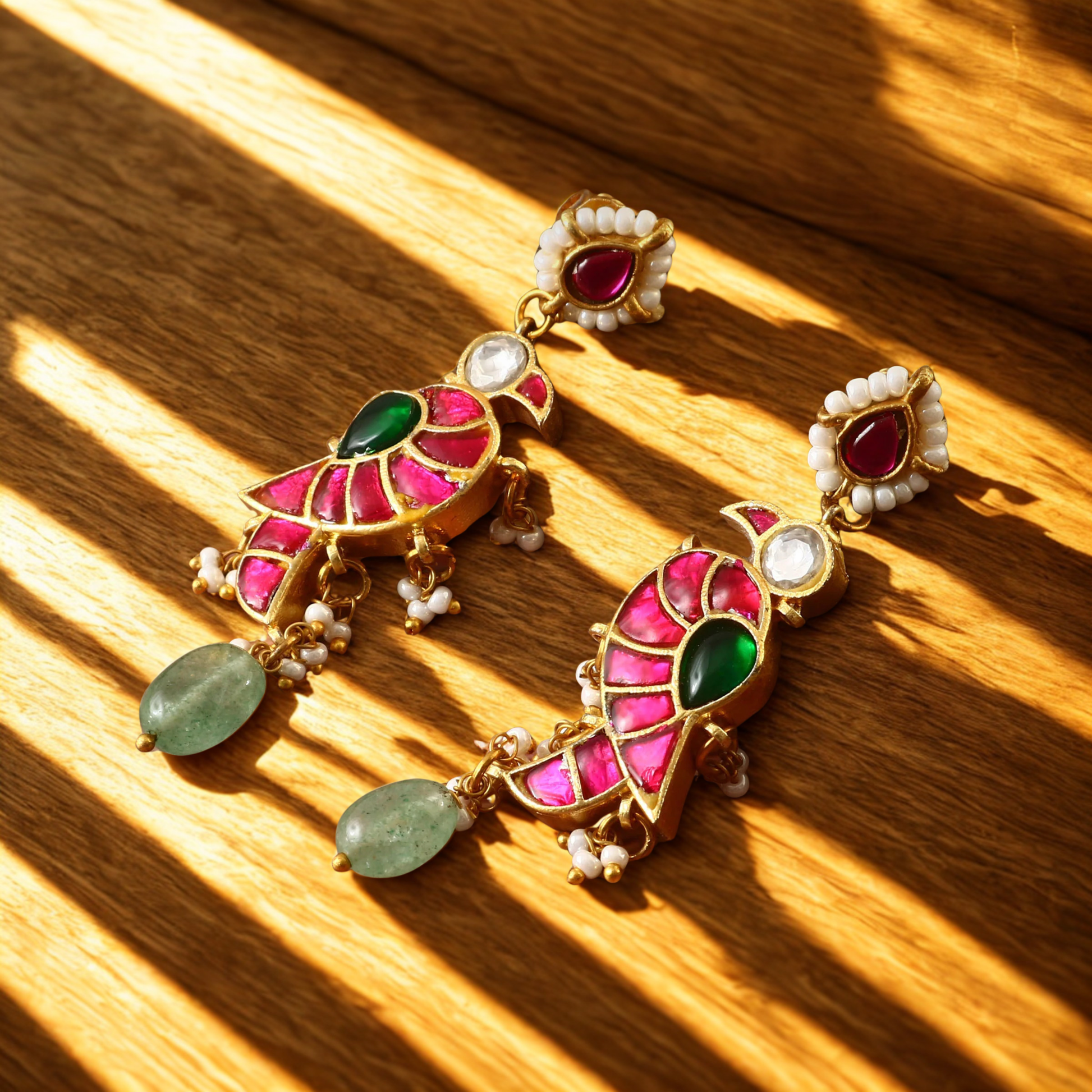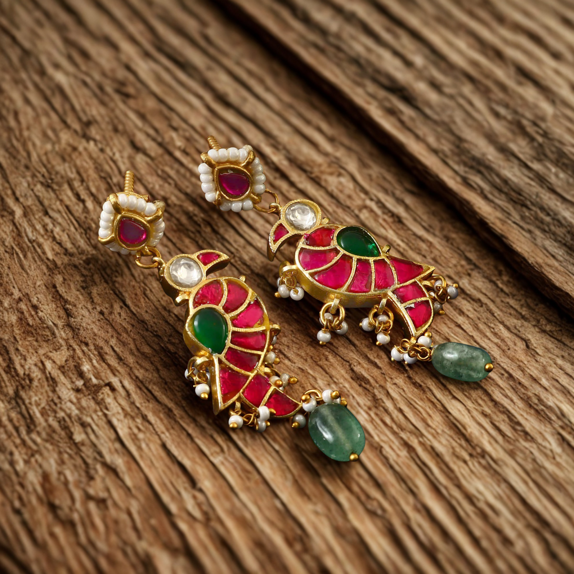 Peacock-inspired design enriched with vibrant meenakari enamel