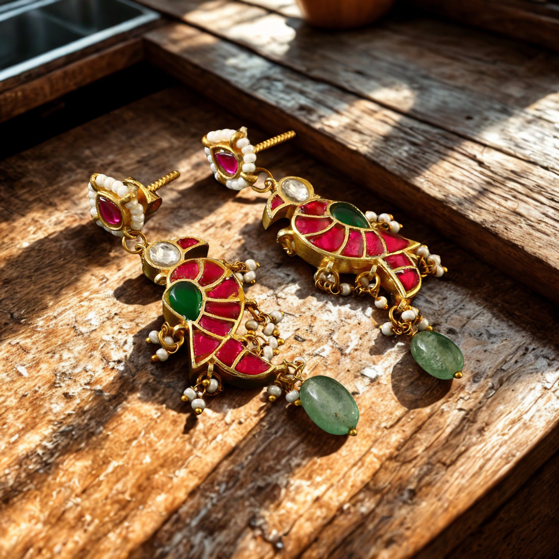 Bring home the beauty of Jaipur’s heritage with the exquisite Mayur Jhumki Earrings by JewelryHouse Jaipur. Inspired by the peacock, an evergreen symbol of grace and majesty, these earrings are a celebration of traditional artistry and modern elegance.